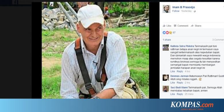 WNA bernama Toni Ruttiman tersebut merupakan orang yang membangun puluhan jembatan di daerah-daerah terpencil di Indonesia.
